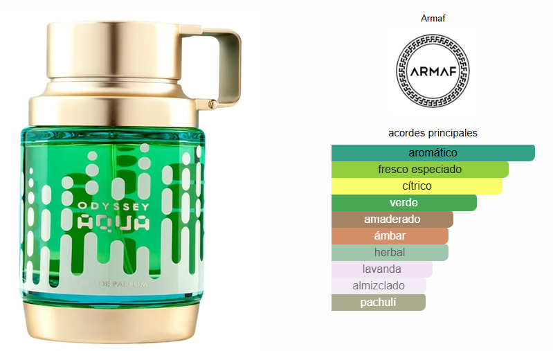 Odyssey Aqua Edition de Armaf es una fragancia de la familia olfativa Amaderada Aromática para Hombres. Odyssey Aqua Edition se lanzó en 2023. Las Notas de Salida son naranja, abrótano y toronja (pomelo); las Notas de Corazón son menta y lavanda; las Notas de Fondo son ambroxan, ciprés y pachulí.