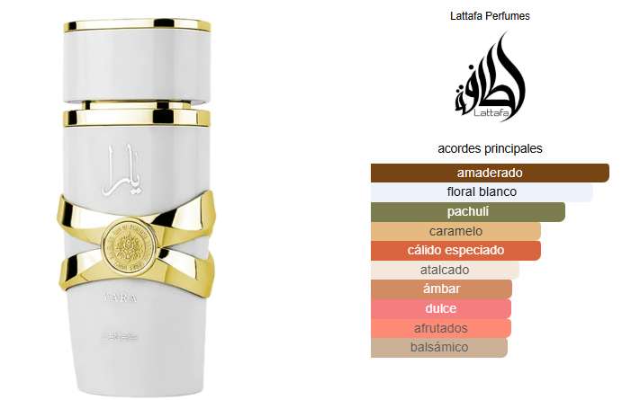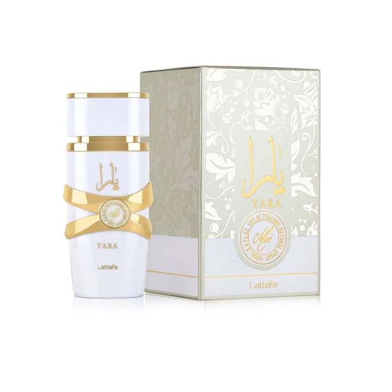 Yara Moi de Lattafa Perfumes es una fragancia de la familia olfativa para Mujeres. Yara Moi se lanzó en 2022. Las Notas de Salida son jazmín y durazno (melocotón); las Notas de Corazón son caramelo y ámbar; las Notas de Fondo son pachulí y sándalo.