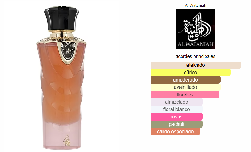 Tibyan de Al Wataniah es una fragancia de la familia olfativa Oriental Floral para Mujeres. Tibyan se lanzó durante la 2020’s. Las Notas de Salida son mandarina, heliotropo, bergamota y orquídea; las Notas de Corazón son jazmín y rosa; las Notas de Fondo son sándalo, pachulí, vainilla y almizcle.