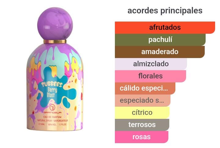 Berry Blast de Tubbees es una fragancia de la familia olfativa para Hombres y Mujeres. Esta fragrancia es nueva. Berry Blast se lanzó en 2025. Las Notas de Salida son grosellas negras, bergamota y fresia; las Notas de Corazón son pachulí, rosa y jazmín; las Notas de Fondo son almizcle y vainilla.