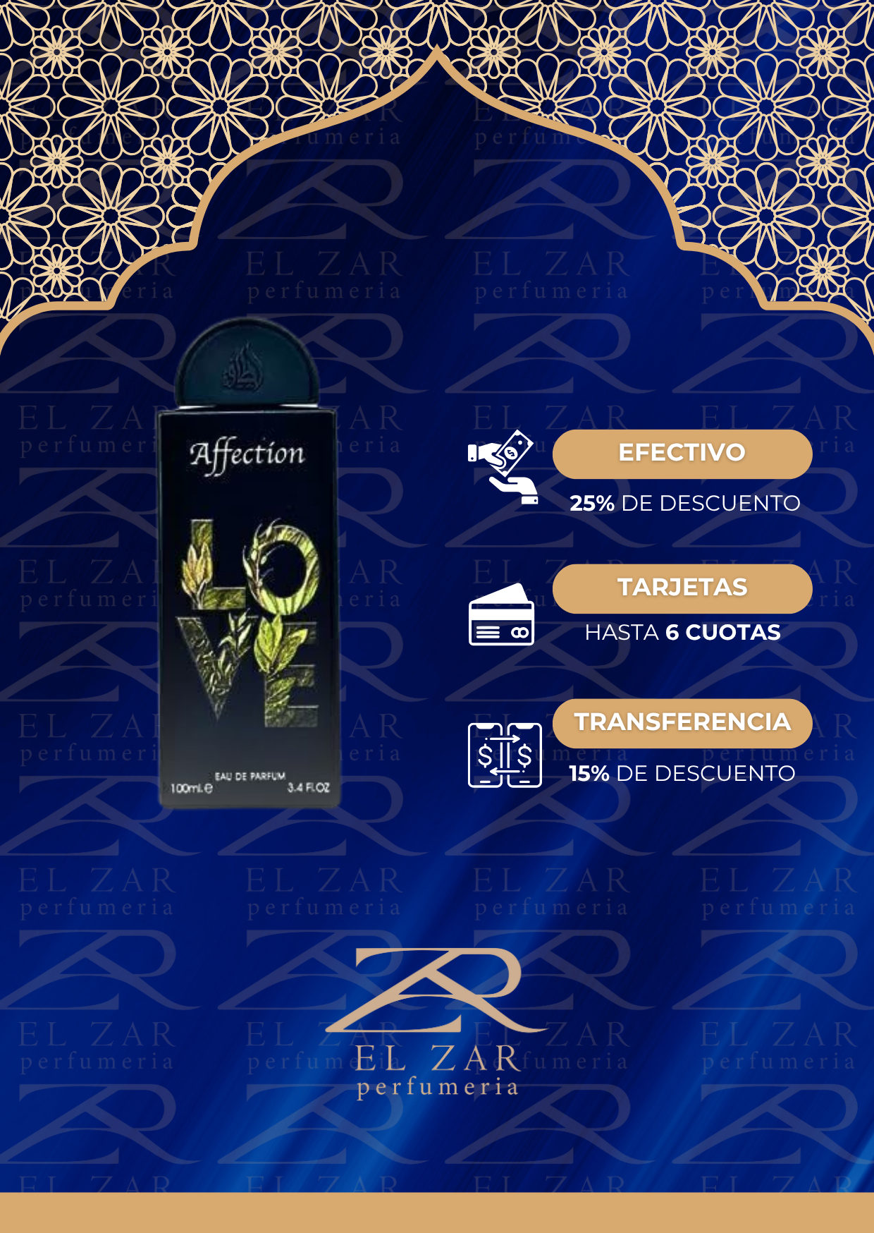 Affection de Lattafa Perfumes es una fragancia de la familia olfativa Floral para Hombres y Mujeres. Esta fragrancia es nueva. Affection se lanzó en 2024. Las Notas de Salida son pistacho (pistache), avellana y grosellas negras; las Notas de Corazón son Lactonas, jazmín, lirio de los valles (muguete) y frambuesa; las Notas de Fondo son Lactonas, vainilla y haba tonka.