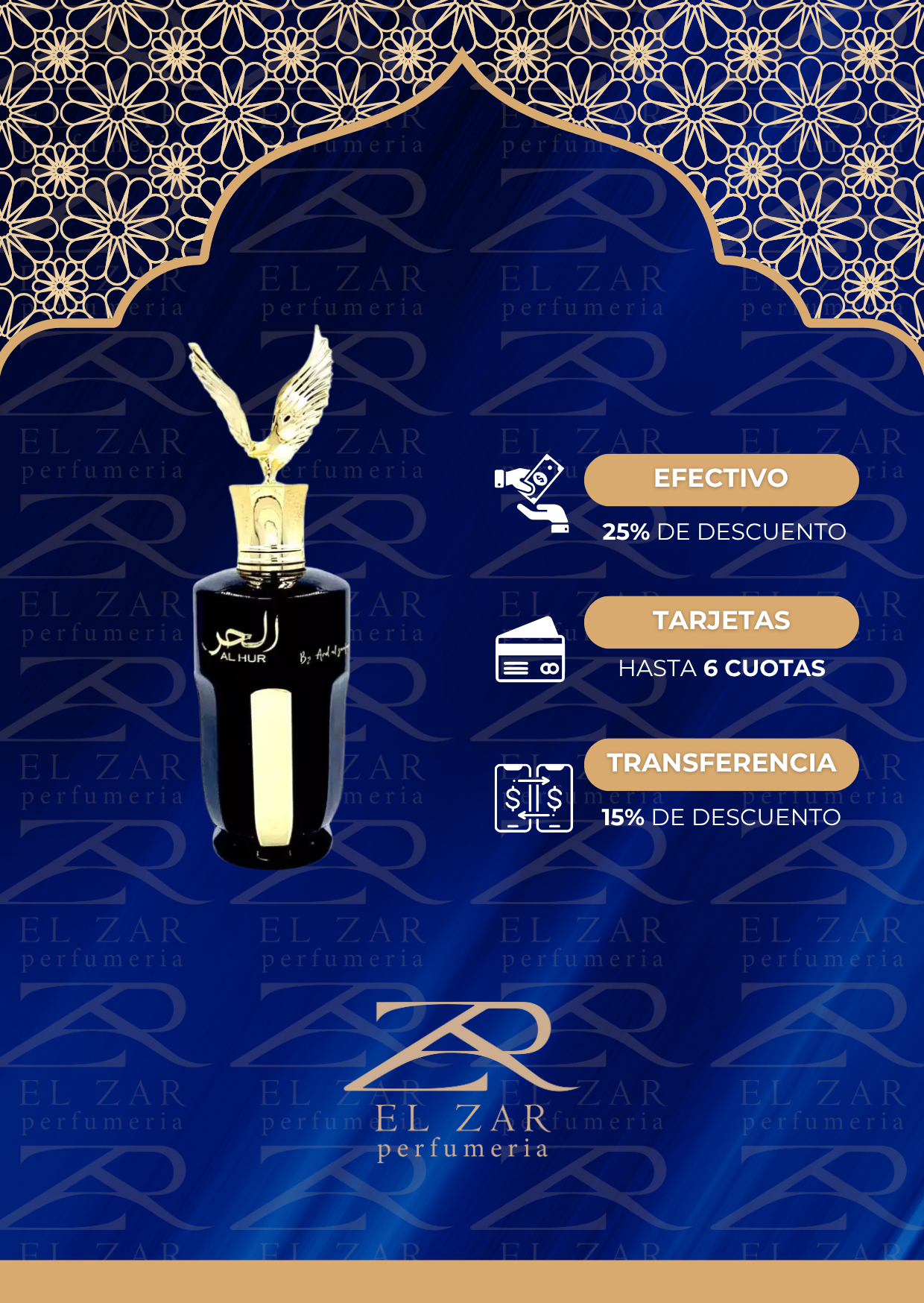 Al Hur So Intense es una fragancia para hombre con un aroma rico e intenso • Notas de Salida: Cardamomo y Bergamota • Notas medias: hojas de pachulí y violeta • Nota de Fondo: Piel Toscana, Musgo de Roble, Madera de Agar, Almizcle y Ámbar