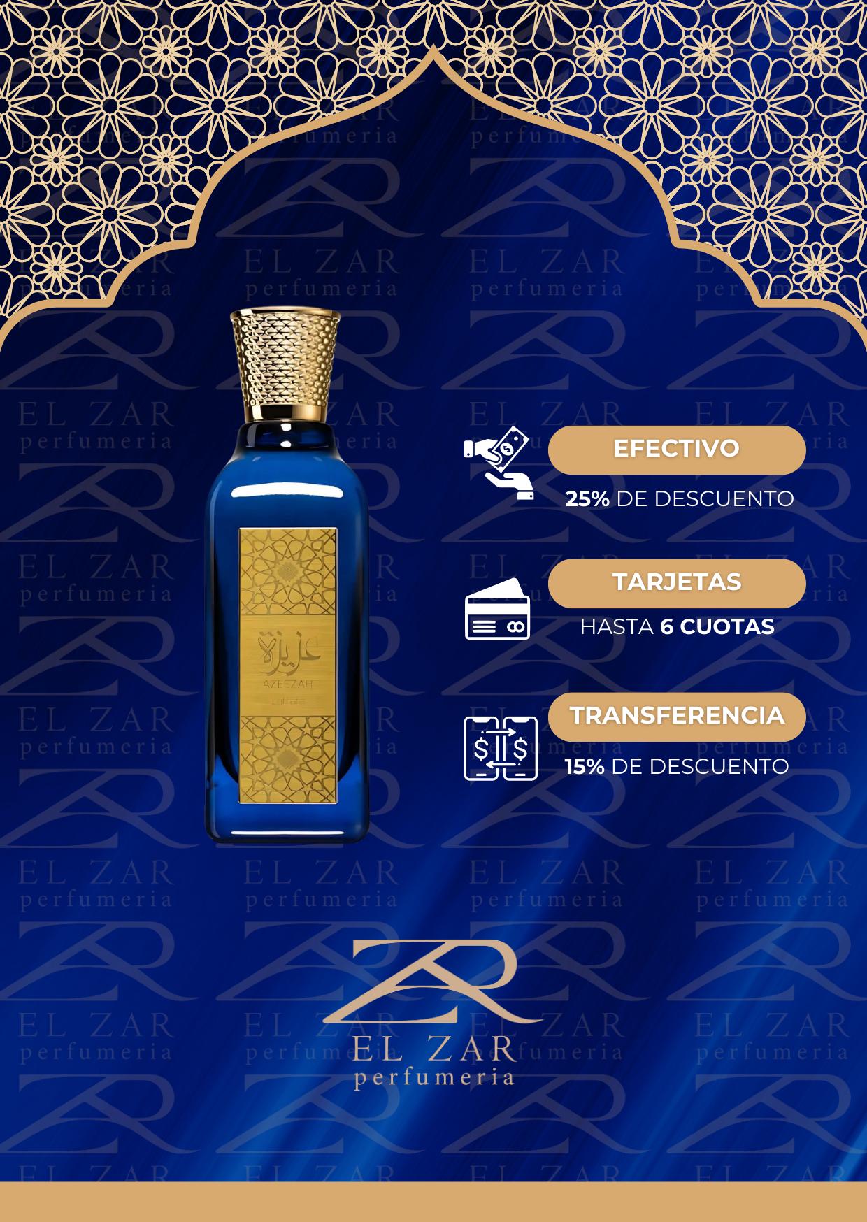 Azeezah de Lattafa Perfumes es una fragancia de la familia olfativa para Hombres y Mujeres. Las Notas de Salida son naranja y cítricos; las Notas de Corazón son jazmín, rosa y lirio de los valles (muguete); la Nota de Fondo es almizcle blanco.