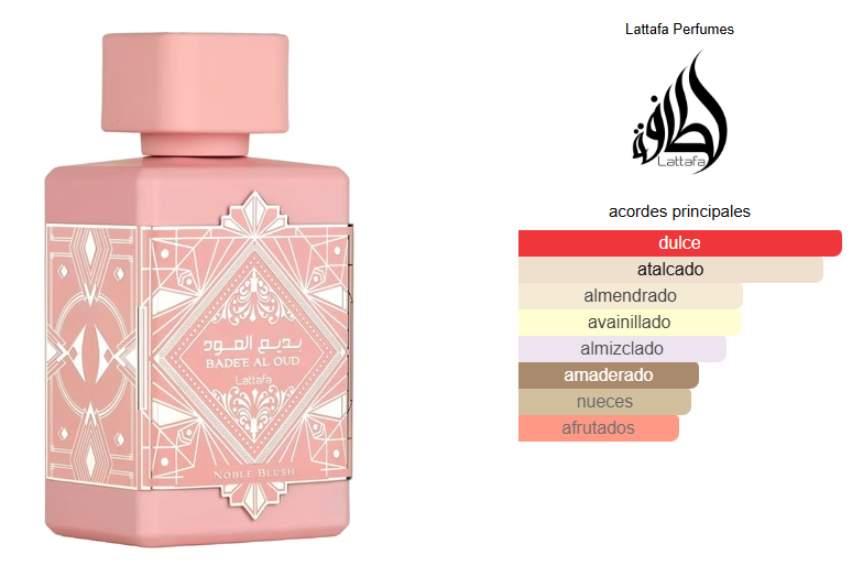 Noble Blush de Lattafa Perfumes es una fragancia de la familia olfativa Floral Frutal Gourmand para Mujeres. Esta fragrancia es nueva. Noble Blush se lanzó en 2024. La Nota de Salida es Rose Milk; las Notas de Corazón son merengue y almendra; las Notas de Fondo son vainilla, almizcle y sándalo.