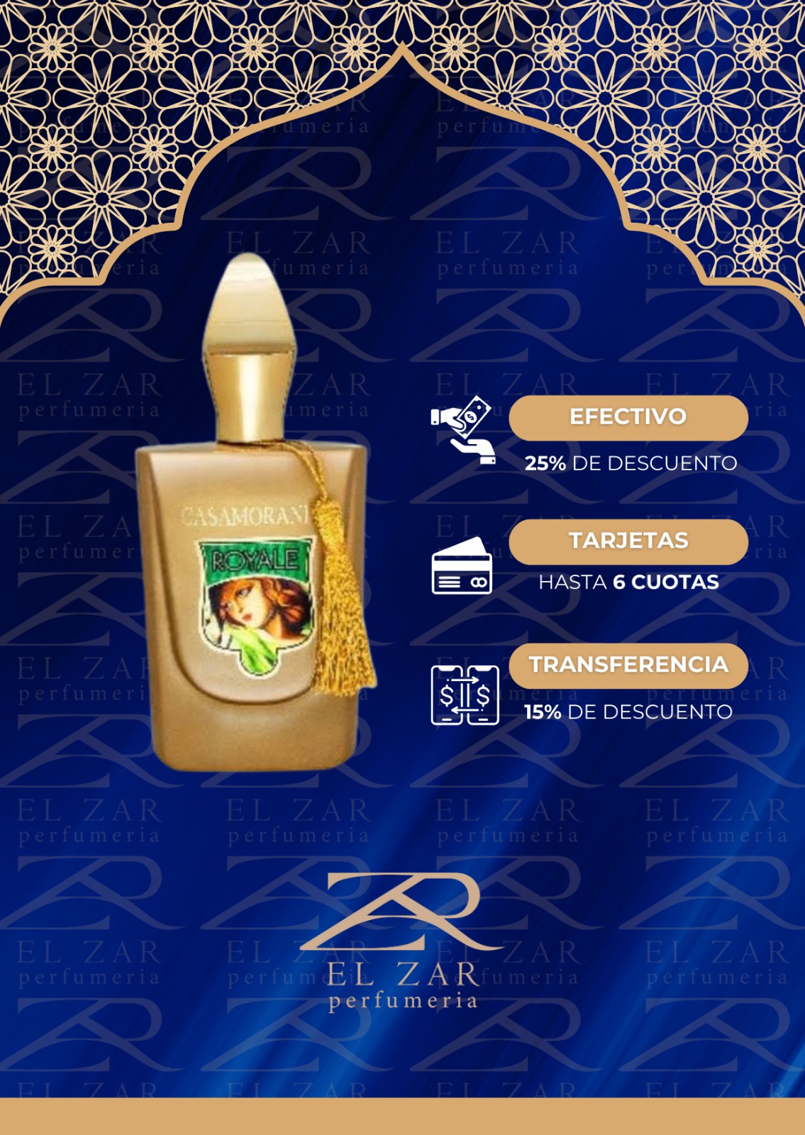 Casamorando Royale es una fragancia de la familia olfativa Oriental Vainilla para Hombres y Mujeres. Casamorando Royale se lanzó en 2024. Las Notas de Salida son naranja sanguina, bergamota y lavanda; las Notas de Corazón son regaliz, canela y jazmín; las Notas de Fondo son vainilla, caramelo y almizcle.