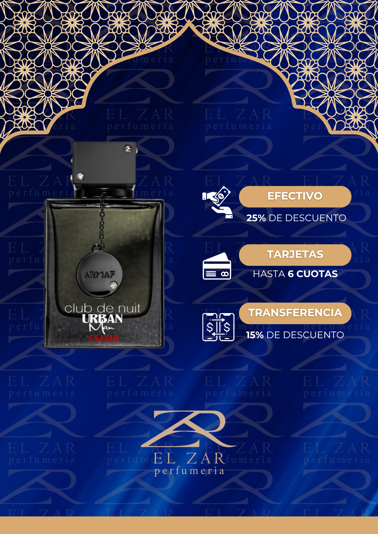 Club De Nuit Urban Elixir de Armaf es una fragancia de la familia olfativa para Hombres. Club De Nuit Urban Elixir se lanzó en 2022. Las Notas de Salida son bergamota, pimienta rosa, flor de azahar del naranjo y jazmín; las Notas de Corazón son lavanda, elemí, geranio, vetiver, azafrán y cempasúchil (tagete, clavelón); las Notas de Fondo son ambroxan, ámbar, cedro, pachulí y ládano.