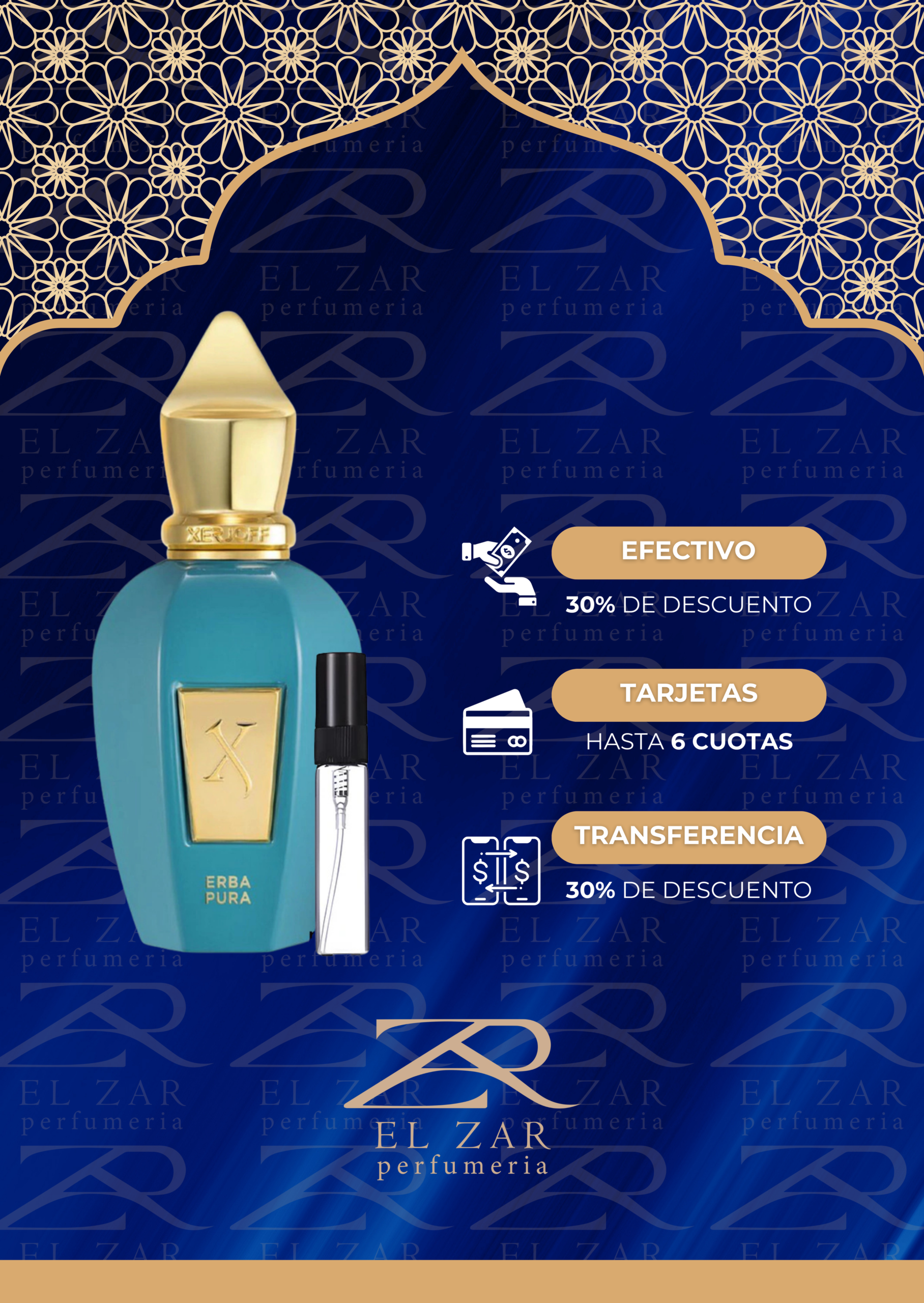 Erba Pura de Xerjoff es una fragancia de la familia olfativa Oriental para Hombres y Mujeres. Erba Pura se lanzó en 2019. Erba Pura fue creada por Christian Carbonnel y Laura Santander. Las Notas de Salida son naranja siciliana, bergamota de Calabria y limón siciliano (lima siciliana); la Nota de Corazón es frutas; las Notas de Fondo son almizcle blanco, vainilla de Madagascar y ámbar.