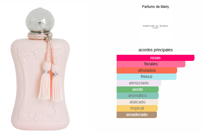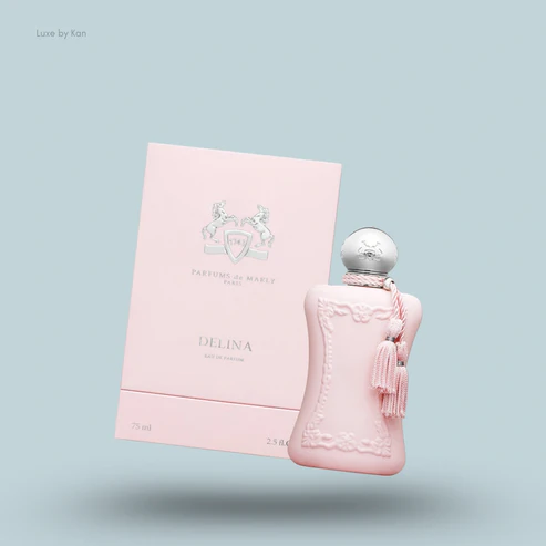 Delina de Parfums de Marly es una fragancia de la familia olfativa Floral para Mujeres. Delina se lanzó en 2017. La Nariz detrás de esta fragrancia es Quentin Bisch. Las Notas de Salida son lichi, ruibarbo, bergamota y nuez moscada; las Notas de Corazón son rosa turca, peonía, almizcle, petalia y vainilla; las Notas de Fondo son cachemira, incienso, cedro y vetiver de Haití.
