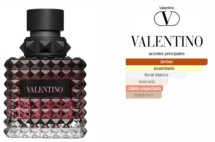 Valentino Donna Born In Roma Intense de Valentino es una fragancia de la familia olfativa Oriental Floral para Mujeres. Valentino Donna Born In Roma Intense se lanzó en 2023. Valentino Donna Born In Roma Intense fue creada por Amandine Clerc-Marie y Honorine Blanc. Las Notas de Salida son vainilla Bourbon y ámbar; la Nota de Corazón es jazmín; la Nota de Fondo es benjuí.