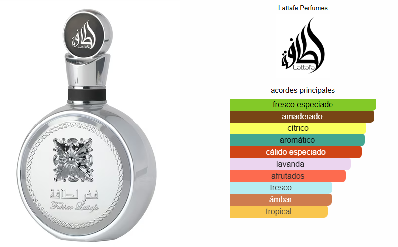 Fakhar Platin de Lattafa Perfumes es una fragancia de la familia olfativa Aromática Fougère para Hombres y Mujeres. Esta fragrancia es nueva. Fakhar Platin se lanzó en 2025. Las Notas de Salida son pimienta rosa, bergamota y cardamomo; las Notas de Corazón son guayaba, lavanda y jengibre; las Notas de Fondo son incienso, palo santo y sándalo.