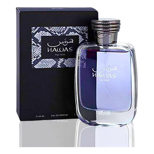 Hawas for Him de Rasasi es una fragancia de la familia olfativa Aromática Acuática para Hombres. Hawas for Him se lanzó en 2015. Las Notas de Salida son manzana, bergamota, limón (lima ácida) y canela; las Notas de Corazón son notas acuosas, ciruela, flor de azahar del naranjo y cardamomo; las Notas de Fondo son ámbar gris, almizcle, pachulí y trozos de madera a la deriva.