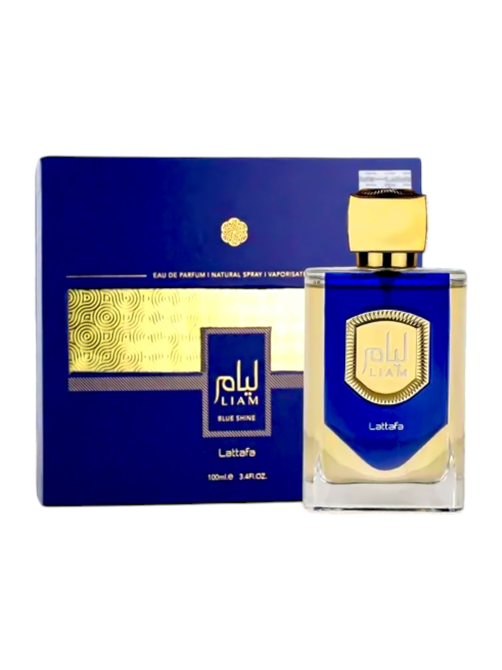 Liam Blue Shine de Lattafa Perfumes es una fragancia de la familia olfativa para Hombres y Mujeres. Liam Blue Shine se lanzó en 2023. Las Notas de Salida son bergamota, romero y pimienta; las Notas de Corazón son notas marinas y violeta; las Notas de Fondo son almizcle, ámbar y pachulí.