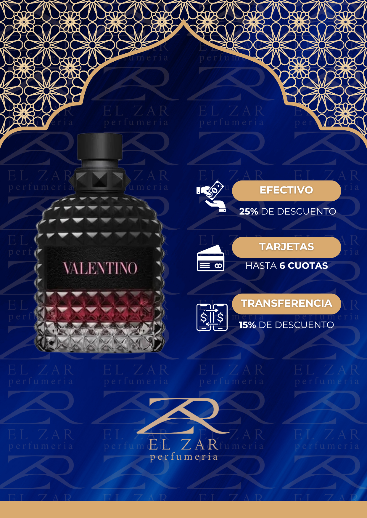 Valentino Uomo Born In Roma Intense de Valentino es una fragancia de la familia olfativa Oriental Vainilla para Hombres. Valentino Uomo Born In Roma Intense se lanzó en 2023. Valentino Uomo Born In Roma Intense fue creada por Antoine Maisondieu y Guillaume Flavigny. La Nota de Salida es vainilla; la Nota de Corazón es lavanda; la Nota de Fondo es vetiver.