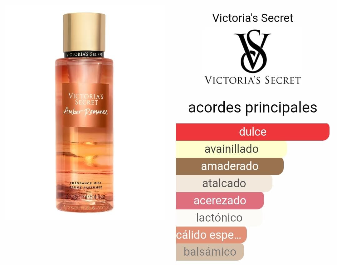 Amber Romance de Victoria's Secret es una fragancia oriental para mujer. Amber Romance se lanzó en 2020. La Nota de Salida es Cereza Ácida; la Nota de Corazón es natillas; las Notas de Fondo son vainilla y sándalo.
