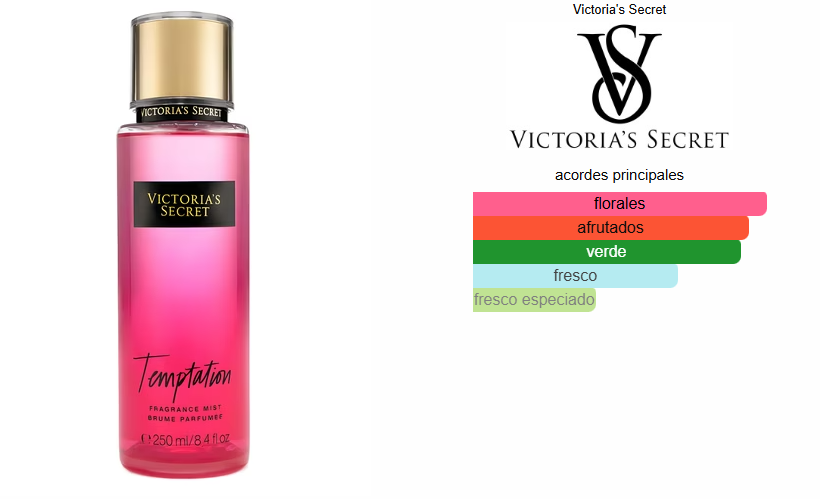 Temptation de Victoria’s Secret es una fragancia de la familia olfativa Floral Frutal Gourmand para Mujeres. La Nariz detrás de esta fragrancia es Irina Burlakova.