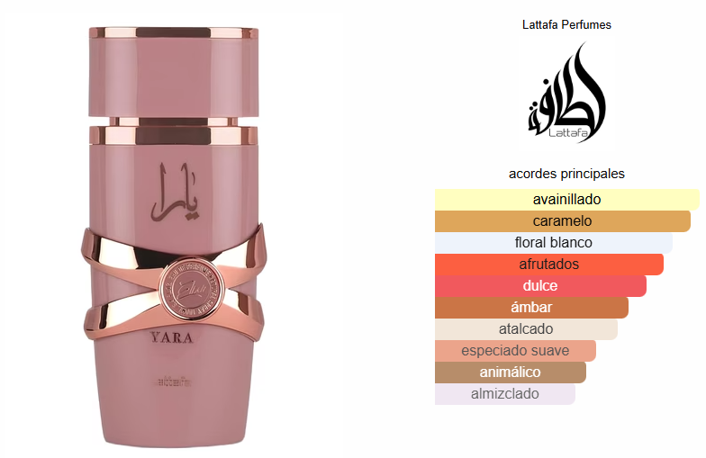 Yara Elixir de Lattafa Perfumes es una fragancia de la familia olfativa Oriental Vainilla para Mujeres. Esta fragrancia es nueva. Yara Elixir se lanzó en 2025. Las Notas de Salida son Strawberry S’mores y grosellas negras; las Notas de Corazón son jazmín y flor de azahar del naranjo; las Notas de Fondo son vainilla, caramelo, ámbar y almizcle.